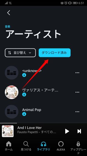 Amazon Musicアプリがオフライン再生にならない?-Android