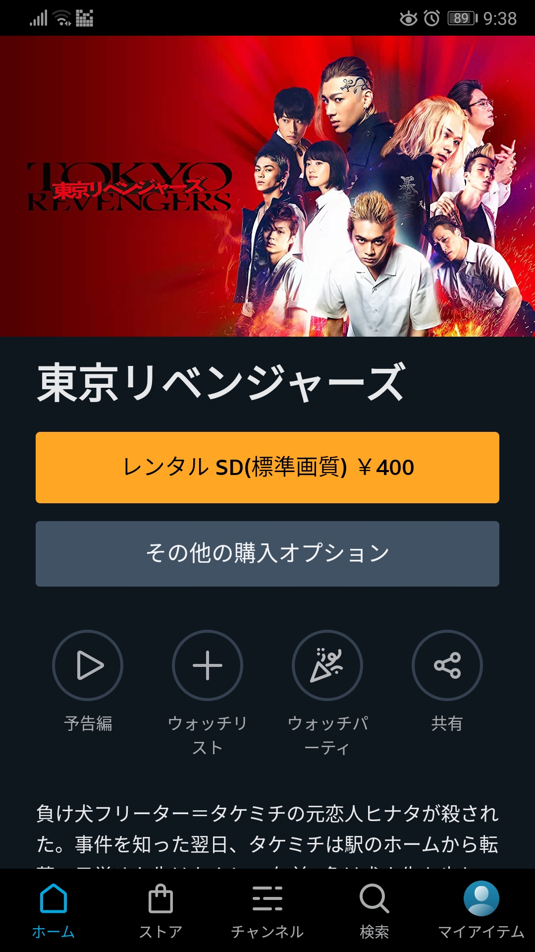 レンタルや購入のボタンが表示されていることを確認しましょう。