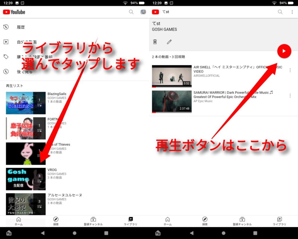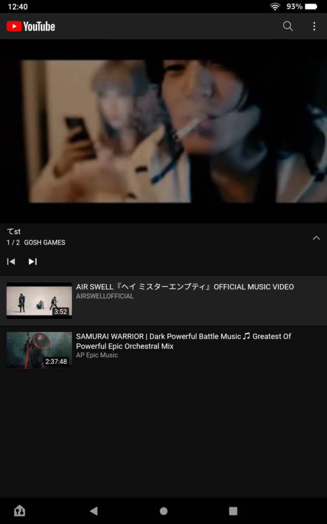 ちょっとした方法でループ再生を楽しむ方法です。YoutubeのアプリはAmazonAPPストアで取得できる青いアレで大丈夫です。