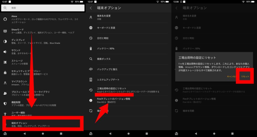 3.工場出荷状態へのリセット