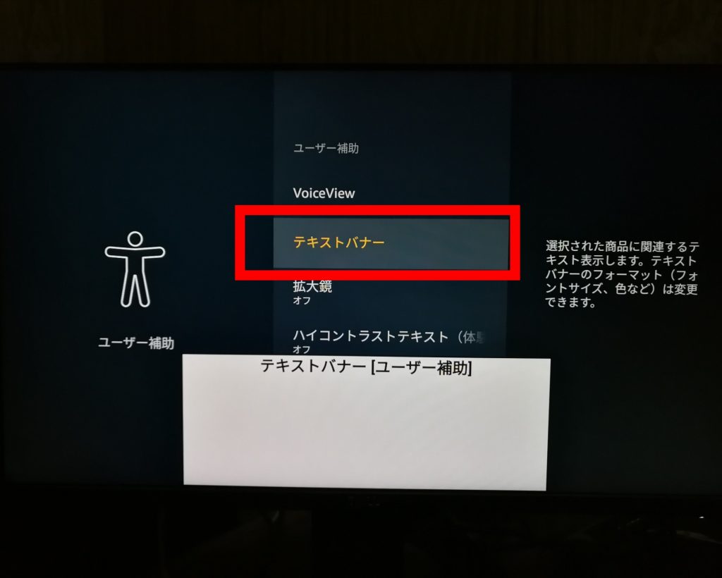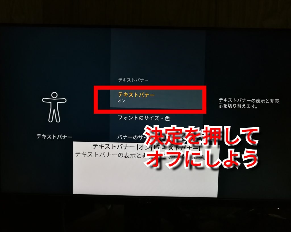 テキストバナーが「オン」になっていることを確認したら、決定ボタンを押して「オフ」に切り替えましょう。