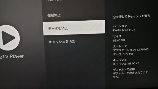 Fire TVの動画を再生する場合に問題が発生する場合は、このアプリのデータを消去し強制終了させます。