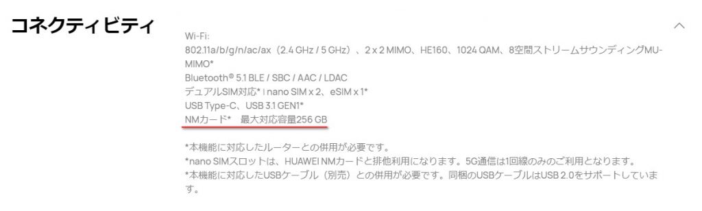 デバイスの「外部ストレージ」や「外部保存媒体」などの説明を確認して、microSDなのかminiSDなのかSDカードなのか~といったことを確認しておきましょう。