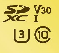 SDXCは先ほども説明した容量の規格ですが、それ以外の表記として「V30」「Ⅰ」「U(中に3)」「C(中に10)」といったこれらのマークは全て、読み書きに関する速度を表しているマークです。