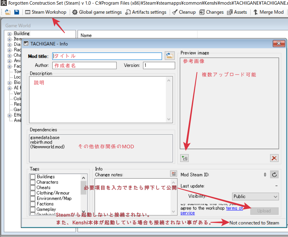 ※ワークショップにアップロードしたい場合は、steamのライブラリから起動しないとアップロードができません。注意。