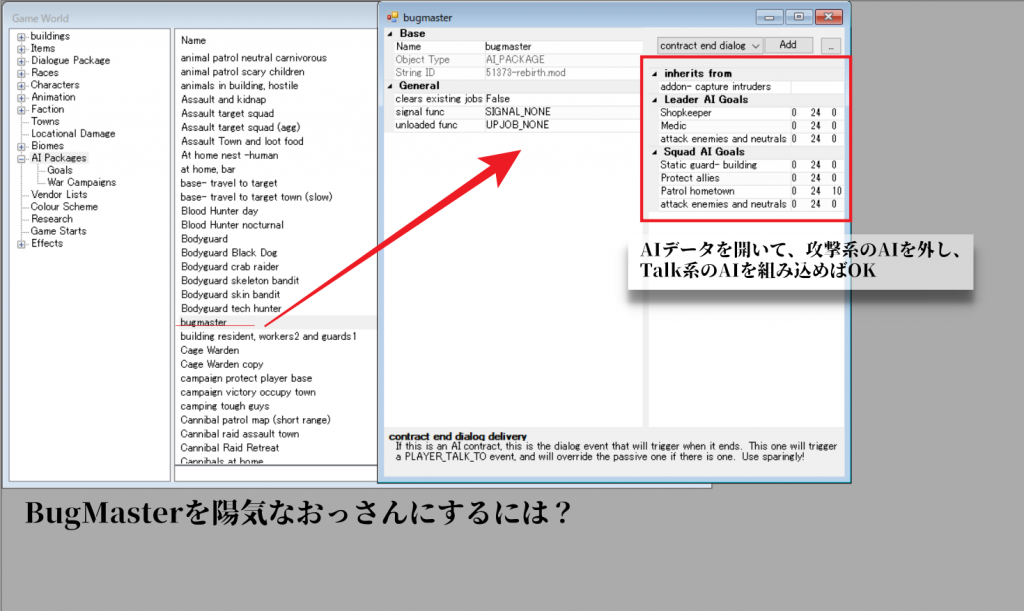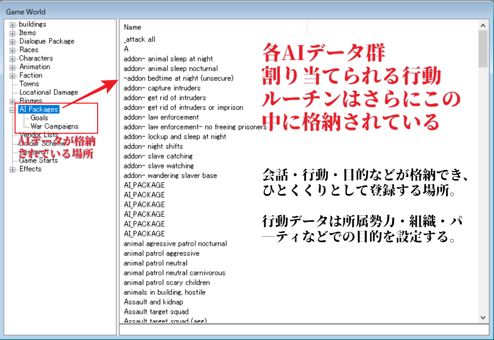 はい、こうして無用な戦いを避けることが(できない)。AIパッケージの中身については「Goals」の設定から変更できるようになっています。