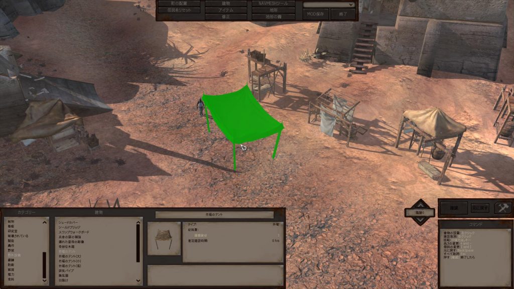 起動後に「Shift+F12」で開発者モードに入り、任意の建物を設置していきます。