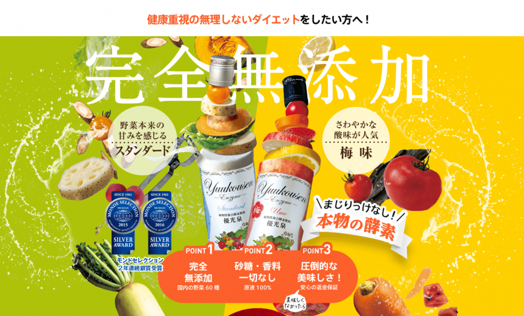 ☑九州産野菜にこだわった完全無添加、本物の酵素ドリンク「優光泉」