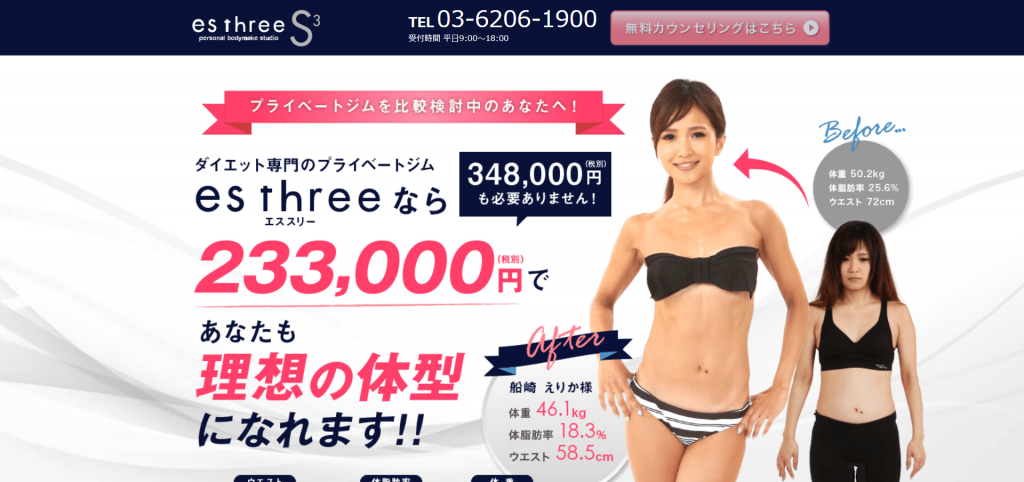 ☑完全個室のダイエットジム es three[エススリー]