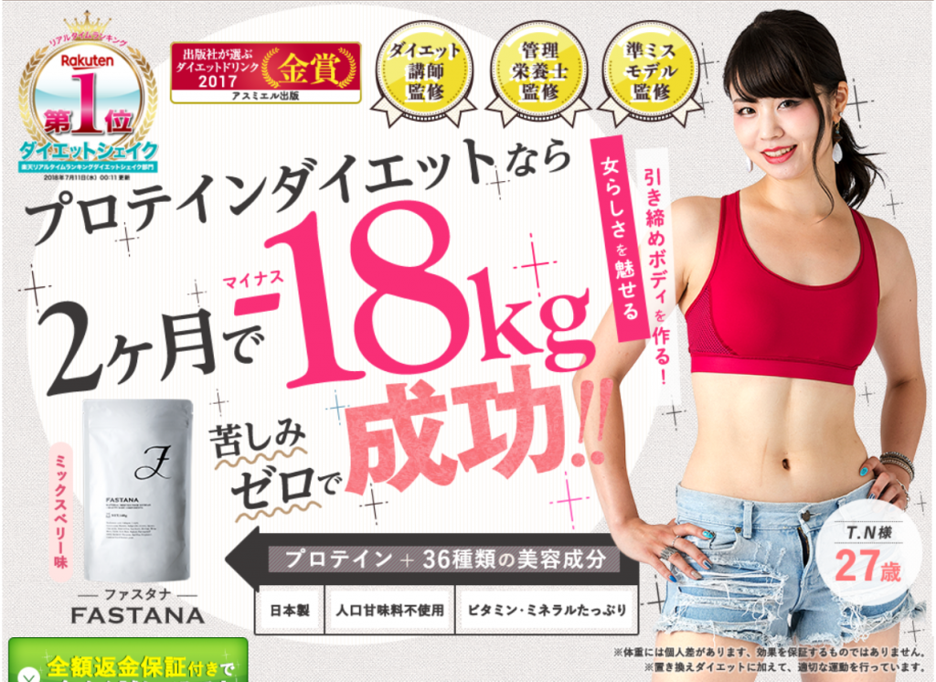 これまた話題のプロテインダイエットの中でも、楽天で怒涛の人気を誇るファスタナです。
