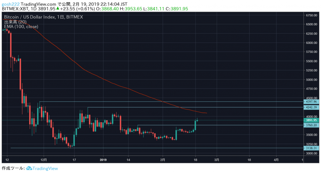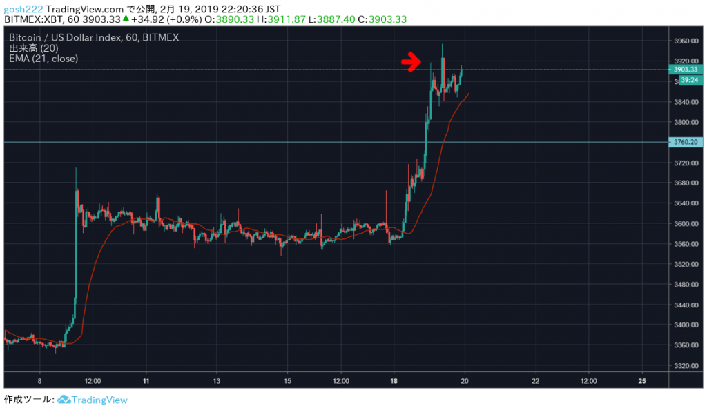 直近2週間の高値をこえてきたこともありさらに続伸してます。21EMAをこえたことが最初の引き金となり、その後もわずかなインターバルを経て再び伸びています。