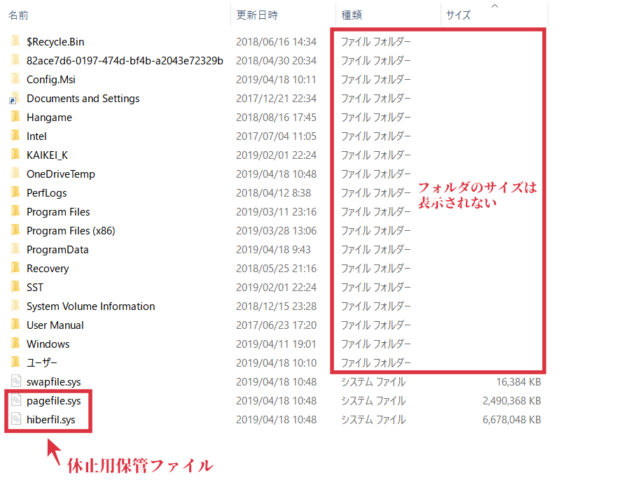 ※下部枠内ファイルはスリープ機能を使わないのであれば、機能を停止すれば削除される。