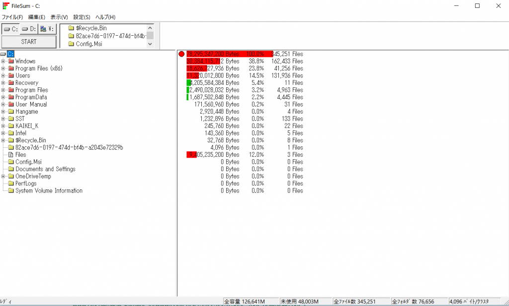 なのでこの機会にCドライブをちょっと整理しようと思い至ったわけです。システムが入っているドライブを軽くしておくと動作も軽快ですからね。