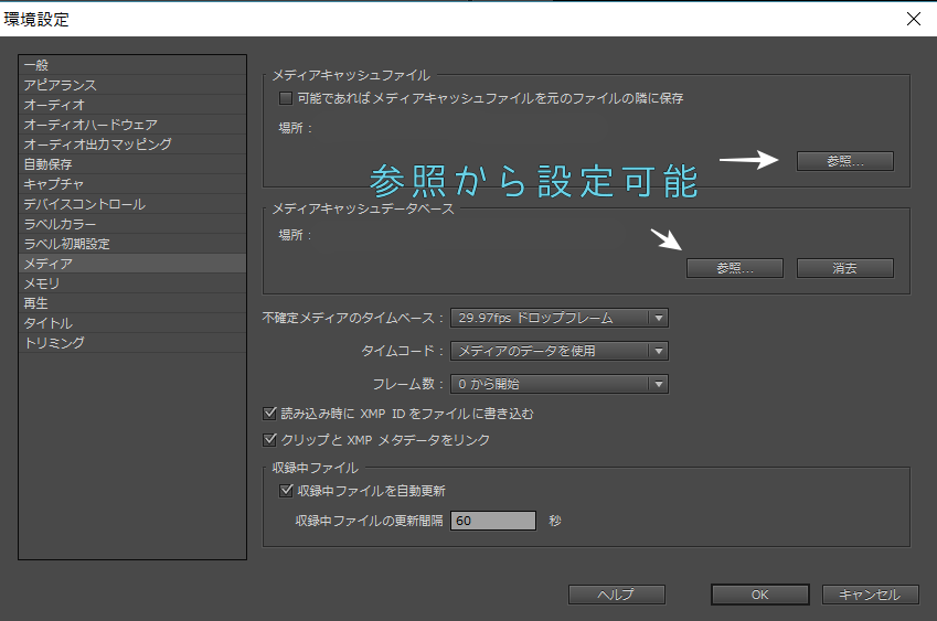PremiereProのキャッシュフォルダを変更しておくとこうした事態も対処しやすくなる。